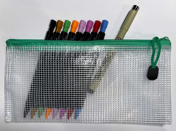 8 colored mechanical pencils and 1 black Sakura Micron Pen contained in a handy zippered pouch. Pen does not bleed, and the set is perfect for doing Bible marking. Purchase one for each student doing Bible Marking.